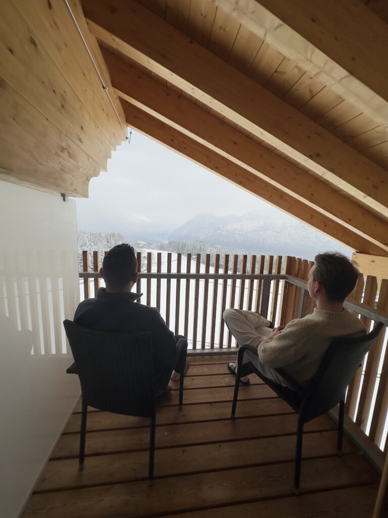 Bei Schönwetter schmeckt’s draußen einfach am besten – auf unserer Terrasse oder dem Balkon, mit frischer Bergluft und herrlichem Ausblick.
